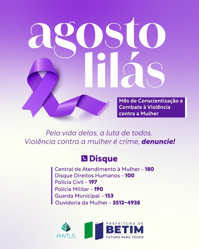 Imagem da capa – Agosto Lilás – Foto Prefeitura de Betim – Adaptação